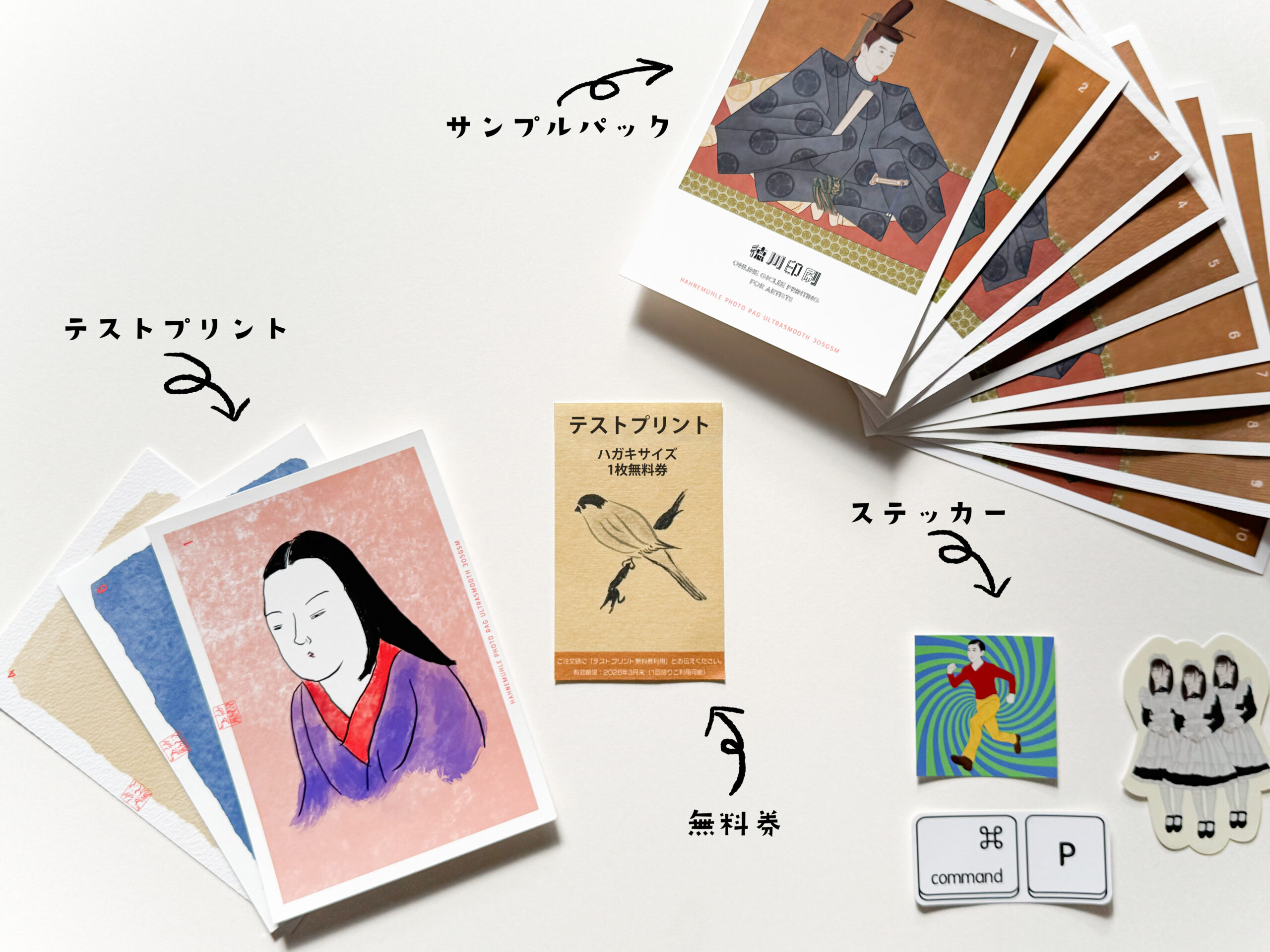 ハガキサイズの(A6)テストプリント1枚無料券をプレゼントしております。